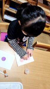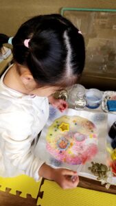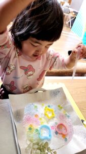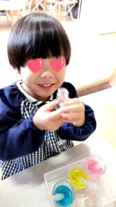 食紅で着色した色水をスポイトでかけると