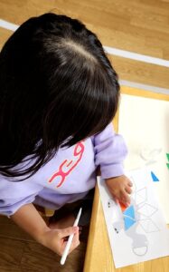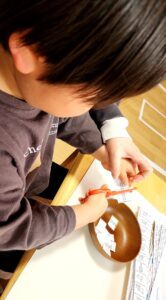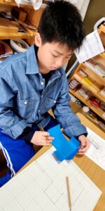 小学生さん、幾何学立体の展開図の活動の後