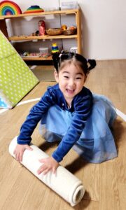 じゅうたん、上手に巻けるよ!